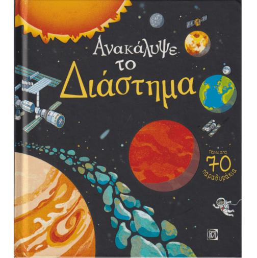Εκτοξευτείτε στο διάστηµα µέσα από τα 70 παραθυράκια αυτού του συναρπαστικού βιβλίου. Ανακαλύψτε πώς δηµιουργήθηκε η Σελήνη, γιατί λάµπουν τα αστέρια και πώς γνωρίζουµε τόσο πολλά σχετικά µε τους πλανήτες που βρίσκονται πολύ, πολύ µακριά.